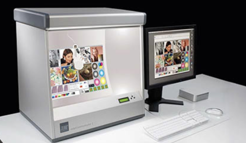 위 사진도 약간 오류가 있긴 하다. 모니터 부분인데... 그건 나중에 다시 다루기로 하고, 이런 식으로 된 부스를 사용한다. 이 라이팅 부스도 다른 색의 영향을 최소화하기 위하여 뉴트럴 그레이(중성 회색)으로 이루어져 있다.