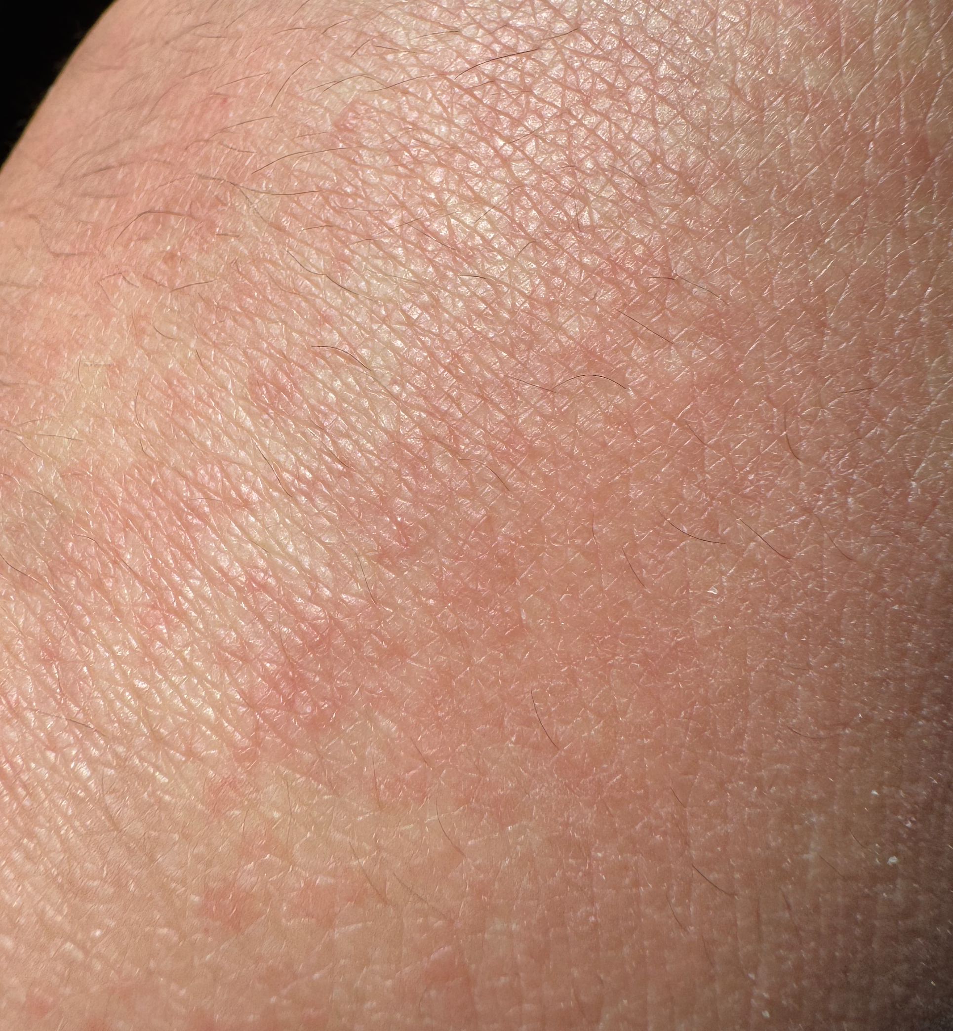 7일차 되니까 손의 붉은색이 가라 앉기 시작하면서 붉은 두드러기가 몸아래 쪽으로 내려갔다.