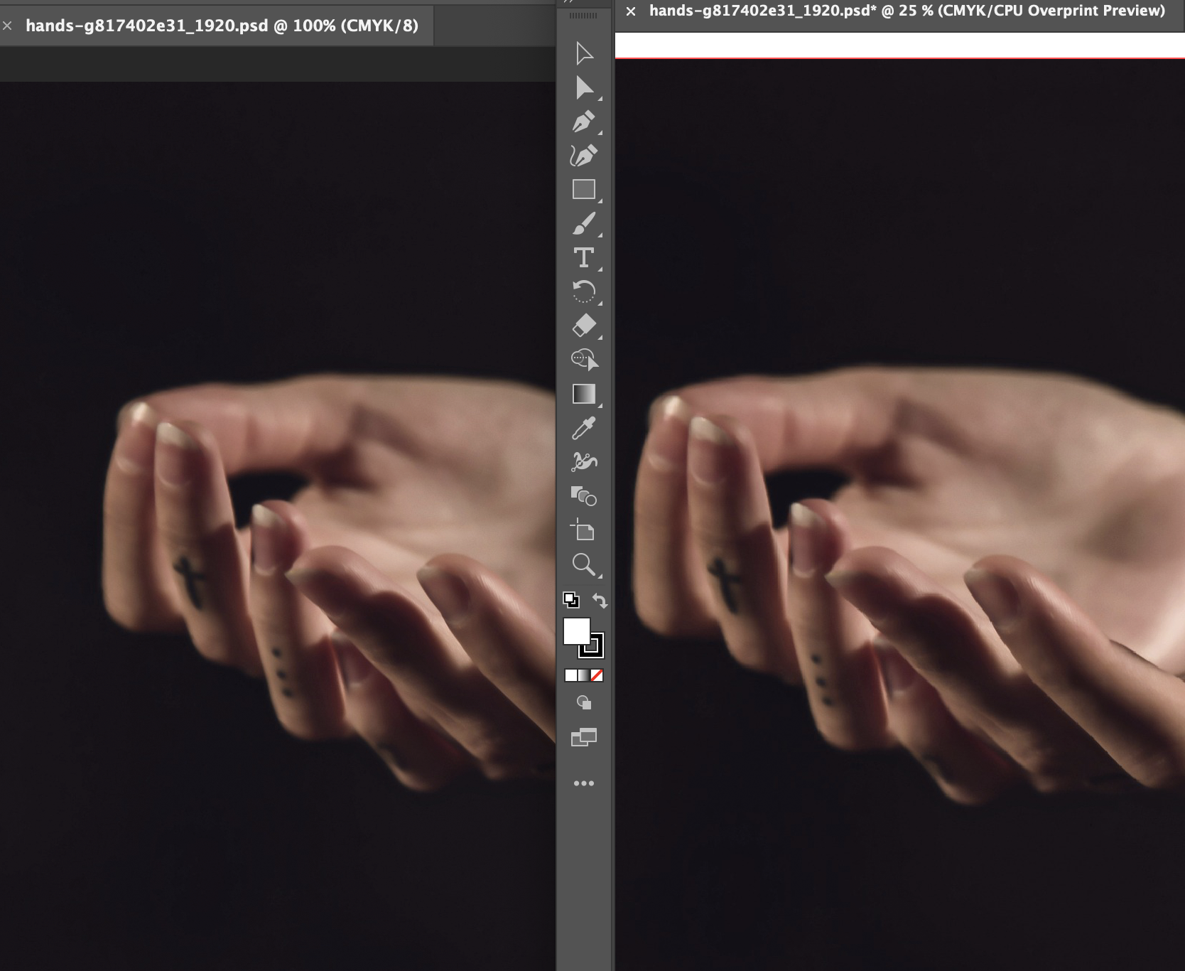 보면 Working Space라는 곳이 있고 이곳이 컬러를 설정하는 메뉴이다. 동일한 이미지를 서로 다른 컬러 설정으로 열어보면 다음과 같이 차이가 난다.