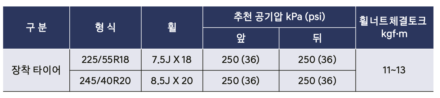 245/40 R20형식 8.5J X 20의 경우 앞뒤 psi 36의 공기 압을 추천합니다.